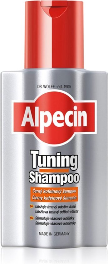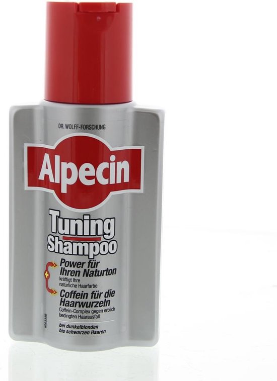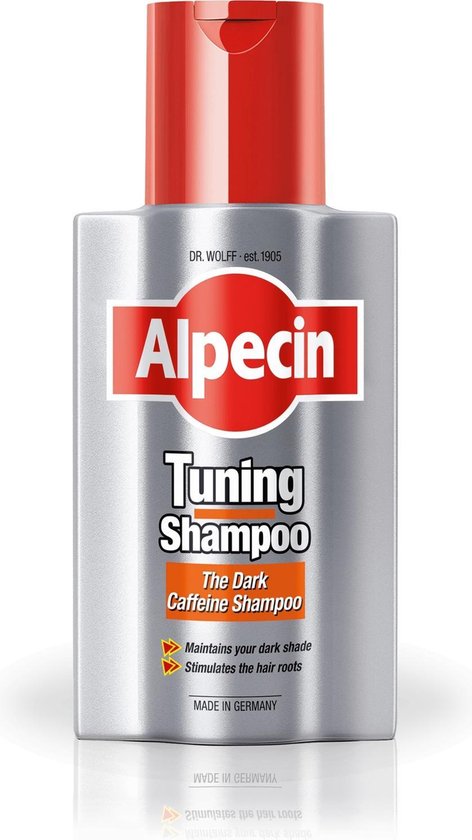 Alpecin Tuning Shampoo 200 ml versterkt jouw natuurlijke donker tot zwarte haarkleur. Door het kleurpigment in de shampoo blijft jouw donkere haarkleur behouden, hierdoor kan je haar er voller uitzien! De eerste grijze haren worden overstemd. Het kleureffect wordt intenser bij regelmatig gebruik en wordt geleidelijk uitgewassen met een andere normale shampoo. Je haarwortels worden gestimuleerd door het cafeïnecomplex, waardoor erfelijke haaruitval wordt voorkomen. Belangrijkste eigenschappen * Geschikt voor donker tot zwart haar. * Voorkomt erfelijke haaruitval. * Het cafeïnecomplex stimuleert de haarwortels. * Je haar ziet er voller en donkerder uit. * Verminder zichtbaarheid van jouw eerste grijze haren. Gebruiksaanwijzing * Laat 2-5 minuten op de hoofdhuid inwerken, van aanbrengen tot spoelen. * Het kleureffect en de opname van cafeïne nemen toe hoelanger je het laat inwerken. Alpecin Tuning Shampoo 200 ml online kopen bij Shop de Alpecin Tuning Shampoo 200 ml online en wij zorgen dat het zo snel mogelijk bij je wordt bezorgd.