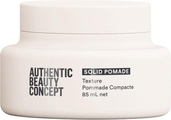 De Authentic Beauty Concept Solid Pomade is een stevige maar flexibele pomade zonder minerale olie. Het geeft het haar een medium hold, sculpturale textuur en controle en hold. Een speciale combinatie van emulgatoren zorgt voor een licht glanzende afwerking.