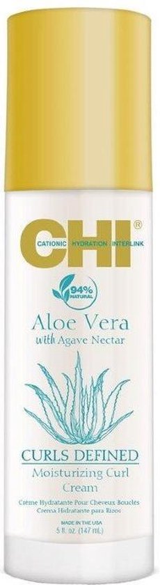 De CHI Aloë Vera with Agave Nectar Moisturizing Curl Crème houdt je krullen gehydrateerd en gedefinieerd. Deze krullencrème is verrijkt met Aloë Vera en agave nectar, wat ervoor zorgt dat je kullen gehydrateerd en gedefinieerd worden. Het product vermindert pluizend haar en beschermt het haar tegen luchtvochtigheid. Het haar wordt glanzend, zacht en pluisvrij. Ook is deze crème niet verzwarend waardoor het haar luchtig blijft. De formule is vrij van sulfaten en parabenen en is tevens glutenvrij. Ook is deze crème geschikt voor alle krultypes.