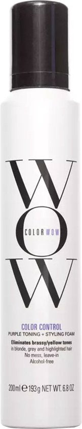 Deze kleurcorrigerende, lavendel getinte mousse helpt direct met het neutraliseren van ongewenste gele of koperkleurige accenten in blond haar. Harde, koperkleurige tinten veranderen dankzij de mousse in natuurlijke, zachte blonde tinten. Color Wow Color Control Purple Toning Styling Foam geeft het haar tevens een flinke opkikker, maakt het haar ontvankelijker voor verdere styling en zorgt voor een maximale veerkracht van het haar. De mousse heeft een unieke, alcoholvrije formule die voorkomt dat het haar hard wordt en uitdroogt en die het verdere stylen van het haar gemakkelijker maakt. Color Wow is vrij van sulfaten, parabenen en siliconen. Ook is het merk 100% vegan en dierproefvrij. Het bevat geen giftige bestanddelen.