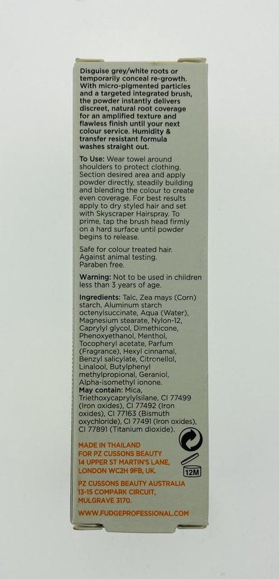 Fudge Root Disguiser Light Blonde haar camouflage poeder. Deze poeder camoufleert een grijze of witte uitgroei. Het poeder zorgt voor een discrete, natuurlijke dekking bij de aanzet. Met micro-gepigmenteerde deeltjes en een geïntegreerde kwast. De Root Disguiser is vochtwerend, geeft niet af en is uitwasbaar. Zorgt voor een versterkte structuur en onberispelijke finish tot de volgende kleurbehandeling.