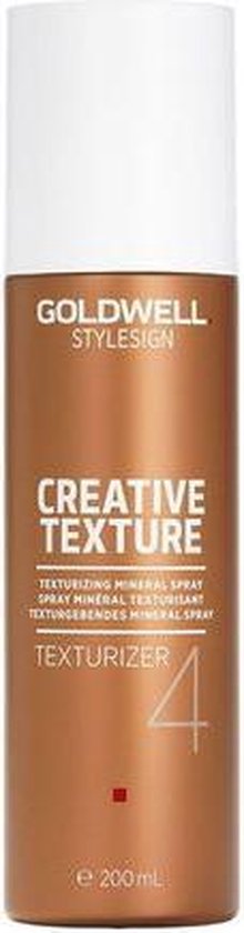 De spray voegt extra textuur toe aan het haar voor extra volume en een matte finish. Goldwell Stylesign Creative Texture Texturizer heeft een medium tot strong hold en is geschikt voor alle haartypes. Met de spray kan tevens een beachy effect gecreëerd worden. De spray bevat bovendien een UV-filter die het haar beschermt tegen UV-stralingen en kleurvervaging tegengaat.