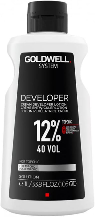 Goldwell - Topchic - Cream Developer Lotion 40 Vol (12%) - 1000 ml is speciaal ontworpen om intensieve, langdurige kleurresultaten te creëren met een uitstekende glans en schittering. De nieuwe formule is geüpgraded met BondPro+ technologie om essentiële bescherming te bieden tijdens de haarkleuringen. Te gebruiken met Topchic permanente haarkleuring. Ingrediënten Water/Aqua/Eau, Hydrogen Peroxide, Mineral Oil/Paraffinum Liquidum/Huile minérale, Cetearyl Alcohol, Glycerin, Phosphoric Acid, Sodium Lauryl Sulfate, Disodium Phosphate, 2,6-Dicarboxypyridine, Etidronic Acid, Bis-Methoxypropylamido Isodocosane, Alanine, Glycine, Malic Acid, Salicylic Acid. Goldwell - Topchic - Cream Developer Lotion 40 Vol (12%) - 1000 ml kopen? Shop de Goldwell - Topchic - Cream Developer Lotion 40 Vol (12%) - 1000 ml direct online en wij zorgen dat het zo snel mogelijk bij je wordt bezorgd!