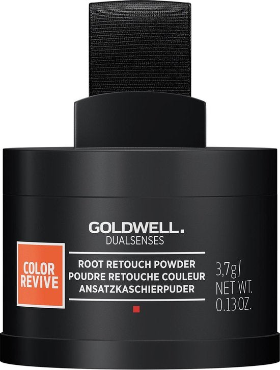 De Goldwell Root Retouch Powder camoufleert grijs haar en verzacht contrasten naar een donkerdere uitgroei. Wil je snel van grijze haren of een vervelende uitgroei af? Dan heeft Goldwell de oplossing voor jou! Dankzij de Dualsenses Color Revive Root Retouch Powder heb je in een handomdraai weer een frisse look! Of je nu die ene grijze haar weg wil werken of voor een snelle touch-up je uitgroei wil vervagen, met de Root Retouch Powder ben je in no-time van je probleem af. Geniet optimaal van een opgefriste coupe alsof je net uit de salon komt lopen. De Goldwell Dualsenses Color Revive Root Retouch Powder komt in een poedervorm en de lijn bestaat uit 5 verschillende kleuren; lichtblond haar, licht- tot donkerblond haar, lichtbruin haar, donkerbruin- tot zwart haar en koperrood. Gebruik van de Dualsenses Root Retouch Powder: het uitgroeipoeder is erg makkelijk in gebruik. Met de uitneembare pad, die zich aan de onderkant van het potje bevindt, kun je in de poeder deppen; dit breng je vervolgens aan op de plekken waar het nodig is. Easy does it met de Goldwell Dualsenses Color Revive Root Retouch Powder! Bestel 'm dus nu, dan zorgen wij dat deze snel bij je wordt bezorgd!