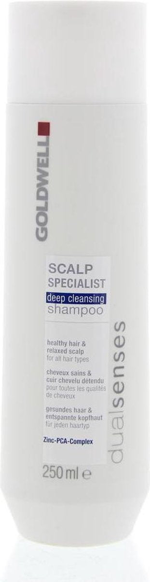 Goldwell Dualsenses Scalp Specialist Deep Cleansing Shampoo is de perfecte shampoo voor vet haar. Deze shampoo reinigt intensief en weet resten van stylingsproducten en overige residu feilloos te verwijderen. De Deep Cleansing Shampoo is in het bezit van zink PCA welke de talgproductie reguleert, waar  door het haar minder snel vet wordt. Het hydro-lime extract werkt intensief verfrissend en hydraterend.