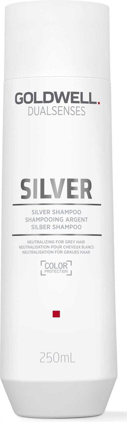 Goldwell Dualsenses Silver Shampoo speciaal voor grijs haar en koel blond haar. Neutraliseert ongewenste geel tinten en verbetert het koele... Lees meer