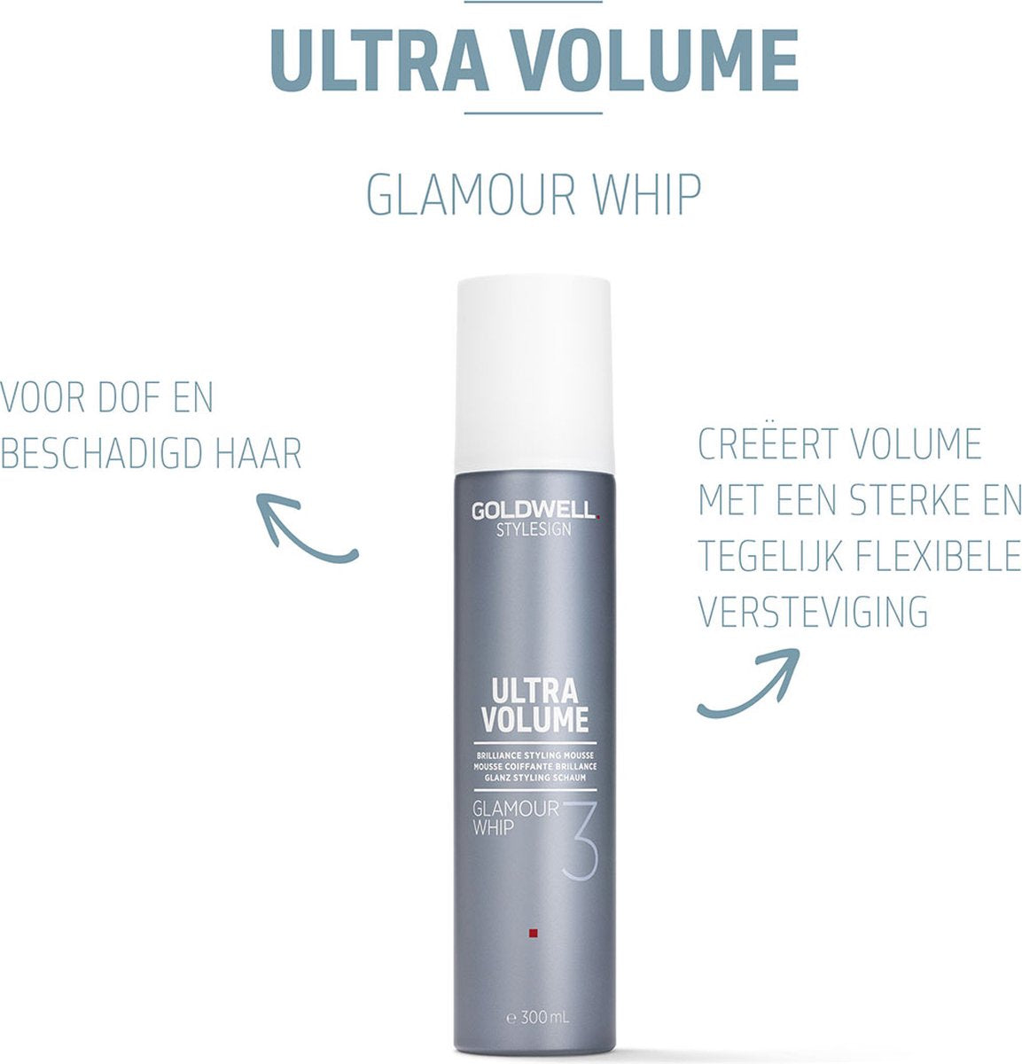 Houd de vorm van je kapsel volledig onder controle. Stylingmousse voor meer volume en glans Goldwell StyleSign Ultra Volume zorgt voor een perfecte fixatie van je haar met flexibiliteit en een aangenaam gevoel.