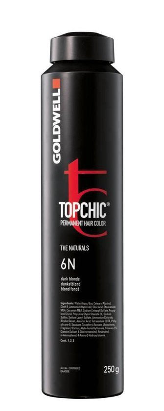 De nieuwe Goldwell Topchic Haircolor heeft een verbeterde formule voor maximaal resultaat! De actieve combinatie van de gepatenteerde Co-enzym Technologie en het innovatieve Color Equalizer Systeem biedt een heel scala extra voordelen: ongekende kleurbriljantie en intensiteit, nog gelijkmatigere kleurresultaten, verhoogde dekking én een nog aangenamere geur. Let op: gebruik de Goldwell Topchic Haircolor altijd in combinatie met de bijhorende verfschaal en cilinder. Klik hier (https://www./product/goldwell-topchic-meetverfschaal-cylinder) Enkele eigenschappen: * Mild-alkalische haarverf (creme-gel) voor maximale dekking. * Een verzorgingscomplex uit vitaminen (B, C) en plantenextracten beschermen het haar al tijdens het kleuren. * Bij normale kleuringen wordt 6% peroxide gebruikt, waardoor het haar zoveel mogelijk wordt ontzien. * Uitgekiend penetratiesysteem waarborgt een gelijkmatig kleurresultaat. * Gepatenteerd kleurmolecuul TRAP zorgt voor extra lange houdbaarheid: na meerdere keren wassen, maar ook na intensieve UV-straling en na permanentbehandeling. Zelfs modetinten blijven langer mooi.