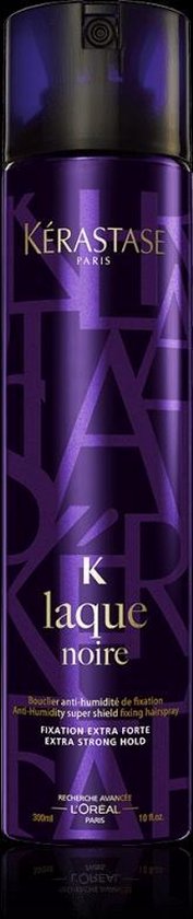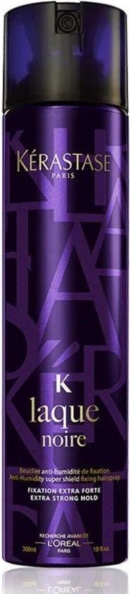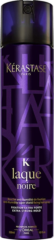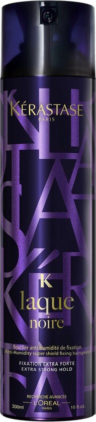 Kérastase Finishing Laque Noire Haarlak met een extra sterke hold is een fixatiespray met een sterke hold, geschikt voor alle haartypen. De combinatie van langhoudende Fixerende Polymeren en de vochtbestendige formule zorgt ervoor dat deze lak een fijne mist verspreidt, die het haar langdurig fixeert zonder dat het stijf wordt. Het haar is 24 uur beschermd tegen frizz.