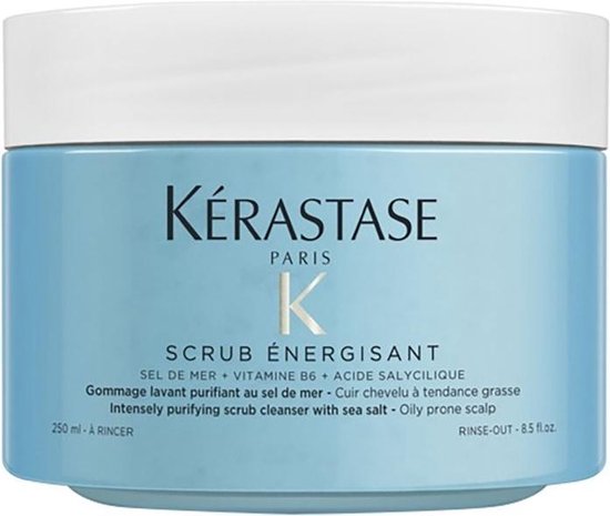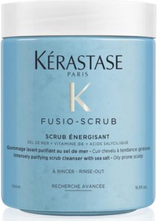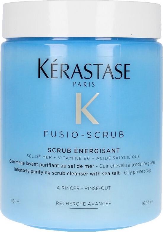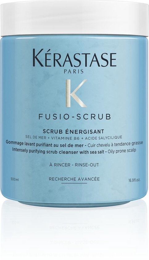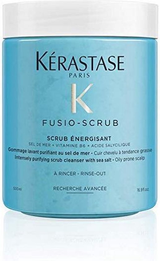 Kérastase Fusio Scrub Energisant is een stimulerende scrub, op basis van zeezout voor de hoofdhuid en het bestrijden van roos. Deze stimulerende scrub vervangt de traditionele shampoo en zorgt voor een diepe reiniging van de hoofdhuid en het haar. De reinigende structuur is specifiek ontworpen voor hoofdhuidproblemen en haar dat gevoelig is om vet te worden, en helpt om vettigheid en roos te bestrijden. De ontgiftende werking van het zeezout exfolieert het vezeloppervlak, waardoor onzuiverheden, overtollig talg, verontreinigingsdeeltjes en productopbouw worden verwijderd. Het maakt het haar sterker en glanzender. De vitamine B6 en Salicylzuur beschermd de hoofdhuid met hun ontstekingsremmende voordelen. Een klein beetje van deze sterke scrub zorgt voor een vernieuwing van de hoofdhuid en ontstopt de poriën voor een optimale gezondheid van de hoofdhuid. Na gebruik laat het de hoofdhuid ademen en lift het de aanzet en biedt langdurig lichtgewicht volume tot 72% direct na de applicatie. Belangrijkste eigenschappen * Bevat zeezout uit Frankrijk: gezuiverd van alle residuen. * Directe detox van het haar en de hoofdhuid. * Lift de aanzet en biedt een langdurig lichtgewicht volume (+72%) direct na applicatie. * Salicylzuur heeft effectieve exfoliërende eigenschappen. * Stimuleert de hoofdhuid. * Vitamine B6 helpt het versterken en groeien van het haar. * Verbetert het effect van de daarna toegepaste behandeling. * Verwijdert overtollig talg, verontreinigingsdeeltjes, productopbouw en onzuiverheden (3x meer verontreinigingsdeeltjes dan met traditionele shampoo). Gebruiksaanwijzing * Gebruik de scrub 1 keer per week. * Zorg dat je haar nat is. * Begin met het aanbrengen van een kleine hoeveelheid op de hoofdhuid (bovenop, bij de slapen, op de kruin en in de nek). * Masseer zachtjes de hoofdhuid, voeg water toe aan de hoofdhuid om het product te helpen een schuim te creëren. * Spoel vervolgens goed uit. * Gebruik na de behandeling altijd een verzorger op de lengten en punten in de vorm van een masker (https://www./merken/kerastase/kerastase-haarmasker) of een conditioner (https://www./merken/kerastase/kerastase-conditioner). Ingrediënten Helianthus Annuus Seed Oil / Sunflower Seed Oil - Citrus Limon Peel Oil / Lemon Peel Oil - Limonene - Parfum / Fragrance - Citral - Zingiber Officinale Root Oil / Ginger Root Oil - Pelargonium Graveolens Flower Oil - Linalool - Citronellol - Geraniol - Hydroxycitronellal - Hexyl Cinnamal Kérastase Fusio Scrub Energisant scrub kopen bij Bestel dus nu de scrub online, dan zorgen wij dat deze snel bij je thuis word bezorgd!