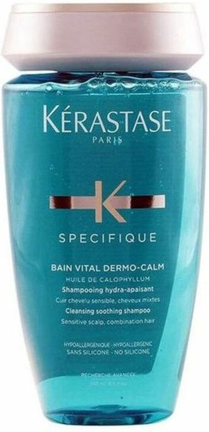 Kérastase Spécifique Bain Vital Dermo Calm Shampoo voor een gevoelige hoofdhuid elimineert onzuiverheden en ontstekingen. De shampoo is uitermate geschikt voor normaal tot vet haar. De reinigende en verzachtende formule reinigt en hydrateert de hoofdhuid, om irritatie en ontstekingen te kalmeren, en zorgt ervoor dat jeuk aan de hoofdhuid verlicht wordt. Haar regenereert vitaliteit. De Calophyllum Olie in de formule zorgt ervoor dat bestaande irritaties en ontstekingen worden gekalmeerd. Piroctone Olamine voorkomt jeuk en Mentho Derivative frist de hoofdhuid op. Glycerol hydrateert en verzacht de hoofdhuid en beschermt tegen externe factoren. De formule is hypoallergeen, siliconenvrij en dermatologisch getest.