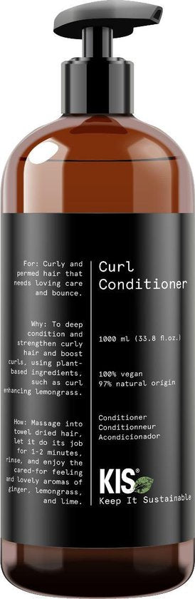 De KIS Green Curl Conditioner is een vegan conditioner om krullend en gepermanent haar mee te verzorgen. Dit product geeft krullen een boost en verstevigt ze. Zo krijgen je krullen meer veerkracht, definitie en volume. De ingrediënten die gebruikt zijn voor dit product zijn voor 97% natuurlijk. Het product ruikt heerlijk fris naar gember, citroengras en limoen. Het gebruik van citroengras heeft nog een voordeel: het verbetert de krul!