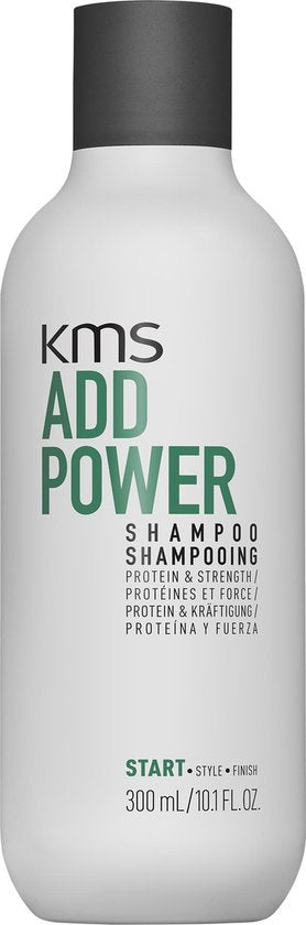 KMS Add power Shampoo is een shampoo die fijn, dun en sterk haar weer veerkrachtiger laat aanvoelen. De nieuwe producten uit de KMS Add Power lijn zijn verrijkt met rijstproteïne, wat een versterkend effect op het haar heeft. Zelfs als je op de aanzet dun haar hebt, krijg je het gevoel van sterk haar. Het andere toegevoegde ingrediënt is witte thee extract, heeft een antioxidante werking en zorgt voor het vertragen van het verouderingsproces en beschermt tegen vrije radicalen. Witte Thee extract bevat waardevolle vitaminen zoals B, C, E en K. De Add Power Shampoo geeft je meteen het gevoel van dikker haar door de toegevoegde antioxidanten en lichtgewicht formule.