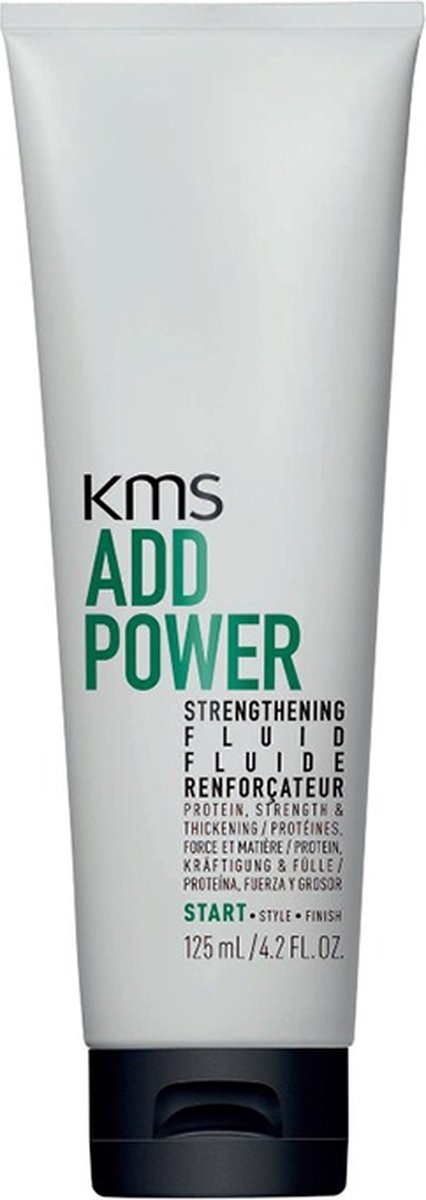 KMS Add Power Strengthening Fluid is een leave-in product dat fijn haar niet alleen sterker en voelbaar dikker maakt, maakt het haar ook beter bestand tegen het stylingproces. De nieuwe producten uit de KMS Add Power lijn zijn verrijkt met rijstproteïne, wat een versterkend effect op het haar heeft. Het andere toegevoegde ingrediënt is witte thee extract, dat met een antioxiderende werking zorgt voor het vertragen van het verouderingsproces en het haar beschermt tegen vrije radicalen. Witte thee extract bevat tevens vele waardevolle vitaminen zoals B, C, E en K. Deze gewichtloze leave-in is 100% vegan en heeft een verwarrend effect op het haar en geeft het een lichtgewichte hydratatie.