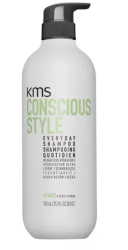 KMS Conscious Style Everyday Shampoo 750 ml, Ideaal voor normaal tot fijn haar en veilig voor gekleurd haar. Schuim op. Spoel uit. Herhaal indien nodig. Verzorg met Everyday Conditioner. 92% van de ingrediënten is van natuurlijke oorsprongReinigt mild en biedt gewichtloze hydratatie. Het haar voelt zacht aan en krijgt een gezonde glans. Vrij van sulfaten, siliconen, microplastics, minerale oliën, kleurstoffen / kunstmatige kleurstoffen.