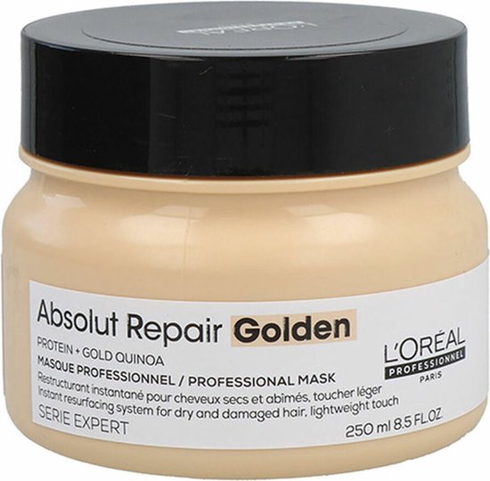 L’Oréal Professionnel Serie Expert Absolut Repair Golden Mask is een herstellend haarmasker, dat beschadigd haar intensief voedt en versterkt. Het haar voelt gezonder aan, is gladder, zachter en makkelijker te ontwarren. Het lichtgewicht textuur van het masker maakt het ideaal voor fijner haar.