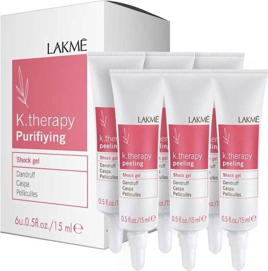 Peeling shock gel zorgt voor een intensieve shockbehandeling tegen roos. Deze shockbehandeling is zeer sterk en effectief. De behandeling sluit naadloos aan op de Peeling lijn van K.Therapy en komt het best tot zijn recht in combinatie met de K.Therapy Peeling shampoo. Heb je last van roos en weet je niet hoe je er vanaf komt? Gebruik de K.Therapy om van je huidige roos af te komen en voorkom de opkomst van roos door je haar goed te verzorgen met dit product.