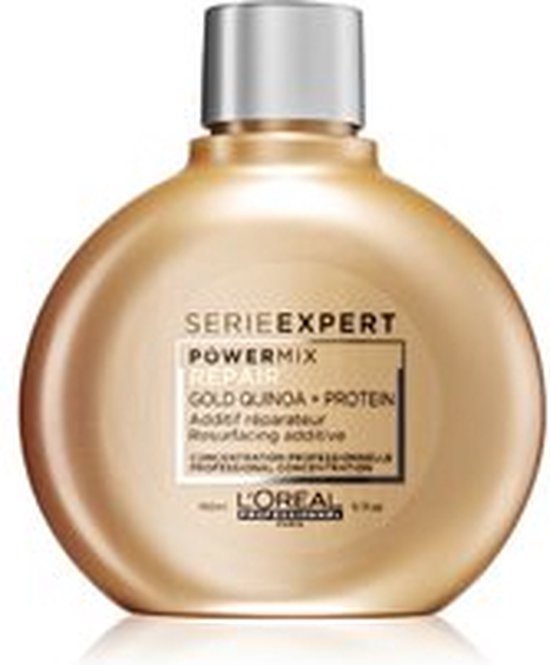 De L'Oréal Professionnel Absolut Repair is de nummer 1 herstellende lijn van L'Oréal en zorgt er voor dat jouw haar snel weer de oude is. aan deze lijn is een nieuw ingredient toegevoegd: Quinoa. Dit zorgt voor sterker haar met meer glans. Het beschadigde haar zal snel weer glad en zacht aanvoelen. De L'Oréal Professionnel Absolut Repair Powermix zorgt dat het haar wordt beschermd voor verdere beschadiging. Door de hoge concentratie pure ingredienten zorgt dit product voor zichtbaar en snel resultaat. De Gold Powermix is dus ideaal geschikt voor zeer beschadigd haar. Het wordt direct zachter en glanzender en ziet er gezonder uit. Gebruik voor optimaal effect ook de shampoo en conditioner van deze lijn. Het masker biedt de finishing touch in het herstelproces van jouw haar.