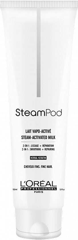 De L'Oréal Professionnel Steampod Smoothing Milk is een verzorgende stylingsmelk, speciaal ontwikkeld voor mensen met dunner haar ter voorbereiding van styling met een L'Oréal Professionnel Steampod. Deze melk gebruik je voor het gebruik van de Steampod en heeft het doel je haar te beschermen en voeden. De ingrediënten in de haarmelk worden geactiveerd door de stoom van de Steampod. Deze ingrediënten zorgen ervoor dat je haar ten minste 3 dagen lang glad en pluisvrij blijft. Bovendien heeft dit product een beschermende en herstellende werking waardoor niet alleen je lokken weer gezond en zijdezacht worden, maar je haren ook beschermd worden tegen invloeden van buitenaf. Hierdoor is deze haarmelk het ideale verzorgingsproduct voor het gebruik van de Steampod.