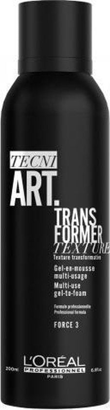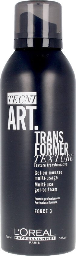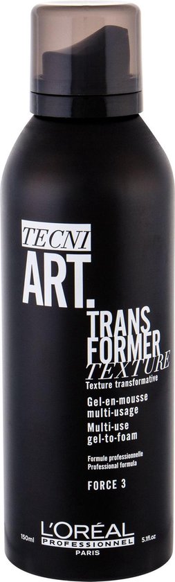 De L'Oréal Professionnel Tecni.ART Transformer Gel-to-Mousse 150 ml is de eerste multi-use gel-naar-mousse die je kan transformeren in je handen. Dit multifunctionele product is geschikt voor alle haartypes en zorgt ervoor dat het haar beter te controleren is meer volume en meer beweging krijgt. Dit product kun je gebruiken voor alle haarstijlen. Van een gladde, wetlook tot veerkrachtige krullen, alles is mogelijk met deze mousse-in-gel. Door de unieke textuur is het product gemakkelijk aan te brengen en heeft het een medium hold waardoor het de gehele dag blijft zitten. Bovendien heeft het ook een beschermende werking tegen hitte van styling tools. De Gel-To-Mousse laat geen residu achter en verzwaart de lokken niet.