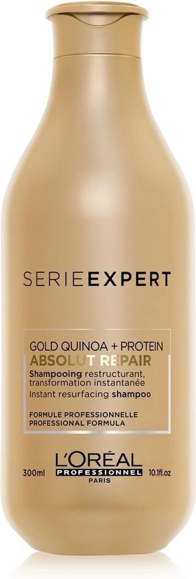 L'Oréal Professionnel Serie Expert Absolut Repair Gold Shampoo is de ideale shampoo voor beschadigd haar. L’Oréal Serie Expert Absolut Repair Shampoo versterkt verzwakt haar en laat het weer stralen. De L’Oréal Shampoo is uitermate geschikt voor beschadigd haar omdat het de vetten in het haar weer herstelt. Deze vetten gaan door gebruik van hitte- en stylingtools verloren. Daarnaast is het ingredient Quinoa toegevoegd voor sterker en glanzend haar. Voor het beste resultaat raden wij aan om de shampoo in combinatie met de bijpassende L’Oréal Serie Expert Absolut Repair Conditioner te gebruiken.