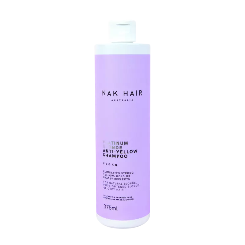 De NAK Platinum Blonde Anti-Yellow Shampoo zorgt ervoor dat al je gouden en gele tonen uit je haar verwijderd worden. De shampoo bevat violette kleurpigmenten en is geschikt voor haar met higlights, blond haar en/of grijs haar. Daarnaast bevat de shampoo Aloë Vera extract zodat de hoofdhuid wordt gekalmeerd en droog haar gehydrateerd wordt.