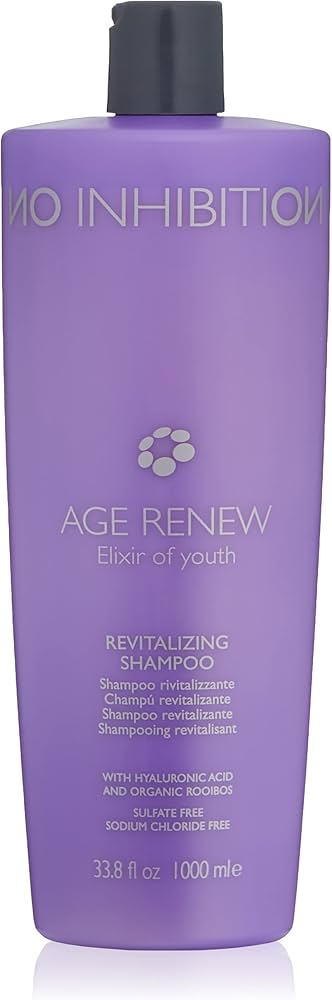 No Inhibition Age Renew Revitalizing Shampoo biedt een perfecte, zachte reiniging voor jouw haar, waardoor de gezondheid en schoonheid optimaal worden behouden. Deze luxe shampoo is verrijkt met hyaluronzuur, dat zorgt voor hydratatie, melitane voor anti-aging voordelen en organische rooibos die antioxiderende eigenschappen biedt. Samen respecteren deze ingrediënten je haar en geven ze glans, vitaliteit, en een levendige uitstraling. Deze shampoo is geschikt voor alle haartypes en is ideaal voor mensen met een droge of verouderde hoofdhuid. Bovendien is de formule vrij van sulfaten en parabenen, waardoor je met een gerust hart kunt genieten van deze verfrissende reiniging.