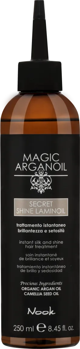 Zoals elk product in het MAGIC ARGANOIL assortiment is SHINE LAMINOIL verrijkt met biologische Arganolie. Om de verlichtende en regenererende kracht van het product te