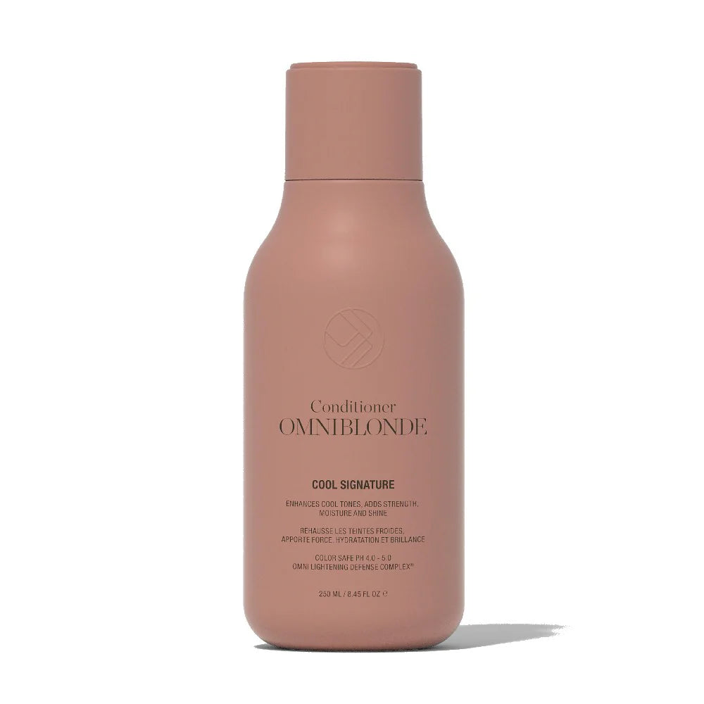 Omniblonde Cool Signature Conditioner zorgt voor sterk, zijdeachtig haar, heldere koele tinten en een buitengewone glans. Ons Omni Lightening Defense Complex® neutraliseert samen met de heldere violet pigmenten alle ongewenste warme tinten in het haar en beschermen de kleur. Deze conditioner zit vol antioxidanten om het haar effectief te herstellen, haarbreuk tegen te gaan en glans toe te voegen. Omniblonde Cool Signature Conditioner is geschikt voor asblond, grijs gekleurd, gebleached haar en blond gekleurd haar of haren met highlights.