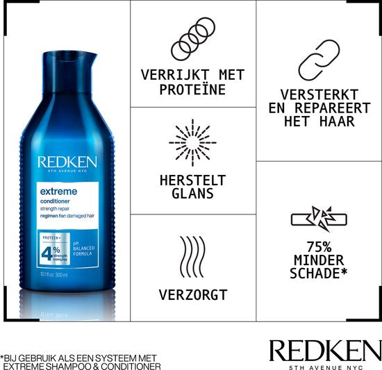 Gebruik voor de beste resultaten in combinatie met Redken Extreme Shampoo en Redken Extreme Anti-Snap of Redken Extreme Play Safe.