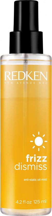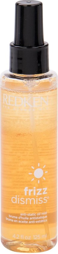 Redken Frizz Dimsis Anti-Statische Olie Mist is een leave-in behandeling speciaal ontwikkeld voor kroezend of pluizend haar. Deze mist is onderdeel van Redken’s nieuw ontwikkelde Frizz-Dismiss collectie die egaliserende voordelen en vochtbescherming biedt voor alle haartypes. De lichtgewichte en veelzijdige formule maakt het haar direct glad en glanzend zonder het haar te verzwaren. De formule is verrijkt met Babussu Olie wat het haar diep hydrateert. Verder zorgt de Aquatoril voor een optimale gladheid en beschermt het tegen luchtvochtigheid. Pracaxi olie versterkt de haarvezels en vermindert pluis terwijl het haar een glanzende en zachte look krijgt. De unieke formule is vrij van sulfaten en veilig te gebruiken op chemisch bewerkt haar.