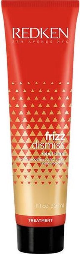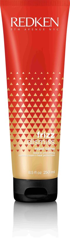 De Redken Frizz Dismiss Rebel Tame Leave-In Crème is een control cream die zorgt voor een intense gladheid, pluiscontrole en hittebescherming. Dankzij deze crème wordt grof en onhandelbaar haar gemakkelijk ontwart, verzacht en beschermt tegen warmte behandelingen tot 230℃. Pluis wordt verminderd en de haarvezels worden versterkt doordat de formule is verrijkt met Braziliaanse pracaxi-olie. De aquatoril zorgt voor een optimale gladheid en helpt het haar beschermen tegen luchtvochtigheid. De formule is vrij van sulfaten.