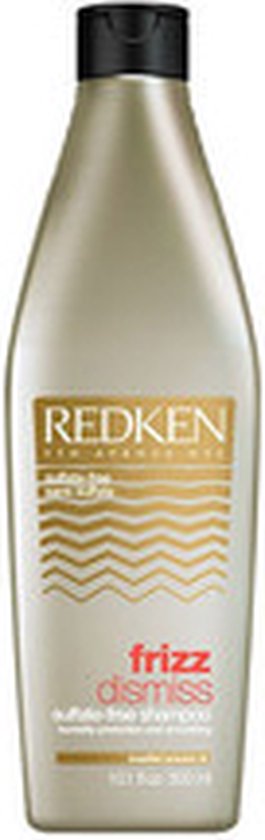 De Redken Frizz Dismiss Shampoo is een shampoo die het haar reinigt op een milde wijze. De shampoo gaat niet alleen pluis tegen, maar voedt tegelijkertijd ook het haar. Het haar wordt meteen verzacht doordat de formule verrijkt is met duurzaam geproduceerde Babassu-olie wat het haar soepel houdt. Verder zorgt deze olie ervoor dat het haar wordt voorzien van een optimale gladheid en een zachte, glanzende look. De Braziliaanse Pracaxi-olie verstrekt de haarvezel van binnenuit en vermindert pluis na het eerste gebruik. De Frizz Dismiss shampoo beschermt het haar tegen luchtvochtigheid en is veilig te gebruiken op chemisch bewerkt haar.