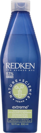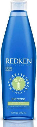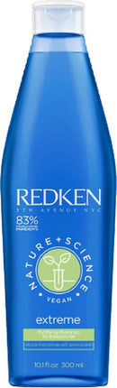 De Redken Natural Science is een veganistische lijn met drie shampoo's en drie conditioners. Alle producten uit deze lijn zijn parabenen, siliconen en sulfaat vrij. Daarnaast zijn de verpakkingen voor 98% biologisch afbreekbaar en van gerecycled plastic gemaakt. De producten zijn ontworpen van de hoofdbehoeftes van het haar: behoefte aan vocht, proteine en kleurbehoud. De Redken Natural Science Extreme Shampoo is ontworpen voor haar dat beschadigd is. Door de Lupine proteine in het product zorgt de shampoo dat haarbreuk voorkomen wordt en gespleten haarpunten verleden tijd zijn.