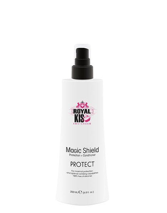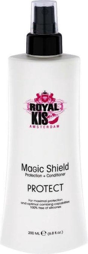 De KIS Royal Magic Shield Protectionspray is een verzorgende en beschermende spray voor alle haartypes. Deze spray is perfect te gebruik om nat haar gemakkelijke doorkambaar te maken. Verder heeft deze spray ook nog een beschermende werking en kan het functioneren als een hittespray. Dit product beschermt namelijk het haar niet alleen de hitte van stylingtools, maar het bevat ook een uv-A/B filter wat ervoor zorgt dat het haar ook beschermd is tegen schadelijke invloeden van buitenaf. Daarnaast gaat deze spray ook nog statisch haar tegen. De formule is 100% vrij van siliconen en parabenen en bevat het ook geen geurstoffen.