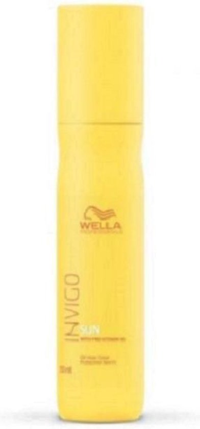 Wella INVIGO Sun Color Protection Spray is een leave-in spray speciaal voor gekleurd haar. Deze leave-in spray beschermt het haar voor of tijdens aanraking met zonlicht. Wella INVIGO Sun Color Protection Spray Haar bevat een innovatieve tweefasenformule. Fase 1 beschermt het haar effectief tegen UV straling waarna fase 2 zorgt voor hydratatie door het toegevoegde vitaminecomplex. Wella INVIGO Sun Color Protection Spray laat het haar er kerngezond uitzien terwijl het ook nog eens zijdezacht aanvoelt. Deze verzorgende haarspray laat het haar nog meer stralen dan de zon.